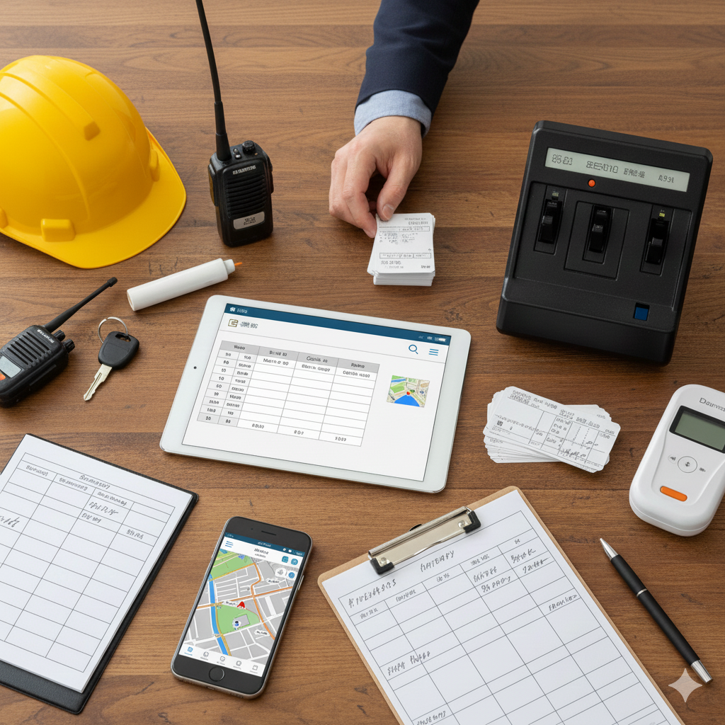 などの方法があり、番手が大きくなるほどに価格・準備期間等の観点から導入のハードルが高くなっていきます。 当然、番手が小さいほど、身近にあるものを使って管理するため、安価に早く導入することができます。まったく何もやっていないという企業さんは、番号が小さい順番に導入を検討されると良いでしょう(ぜひ、今日から始めてください)。 また運送業の勤怠管理は下記の項目を記載しておくと合法性が高まります。