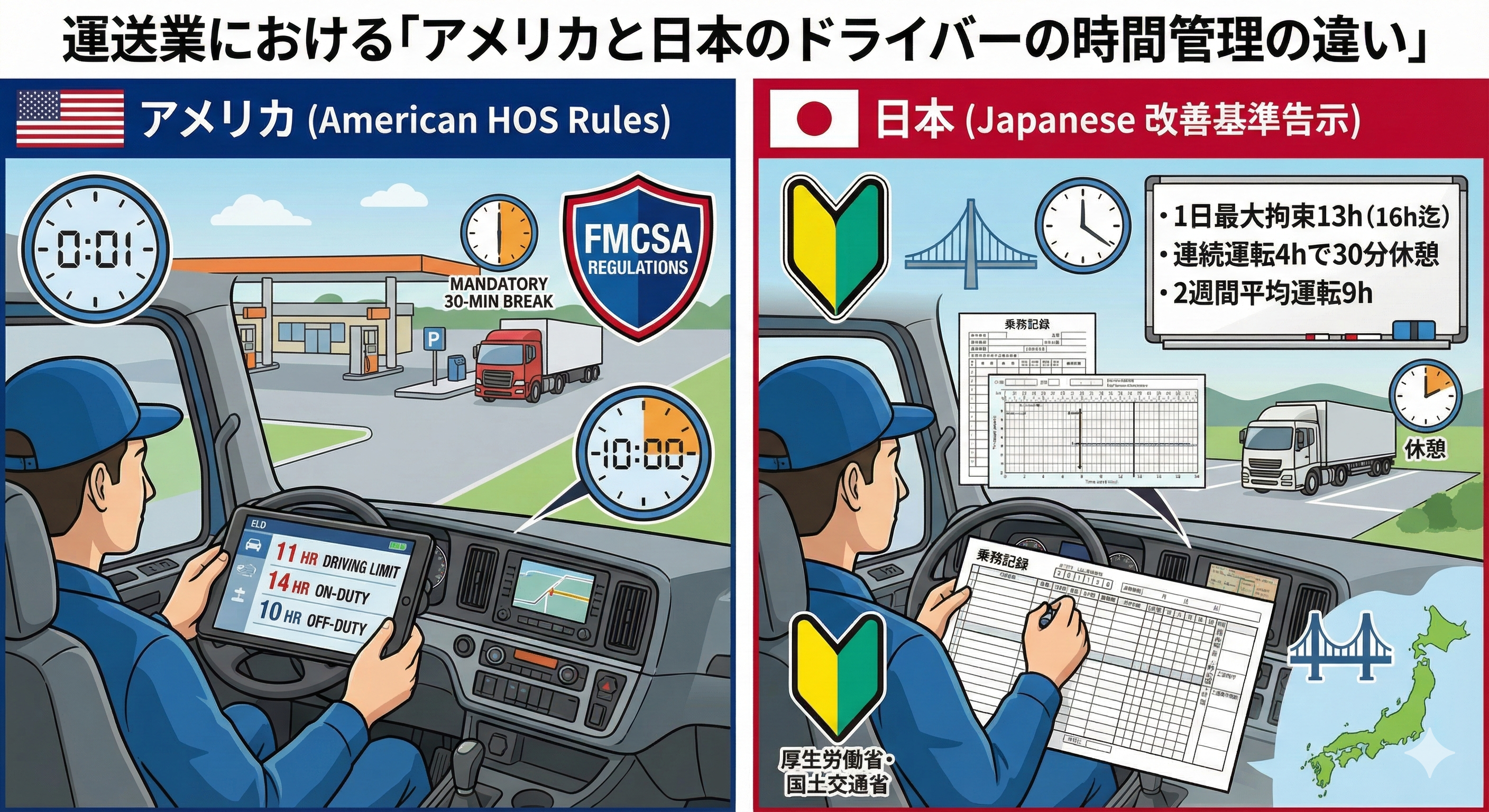 まずは日本とアメリカの運行管理の法規制の比較をしてみましょう。
