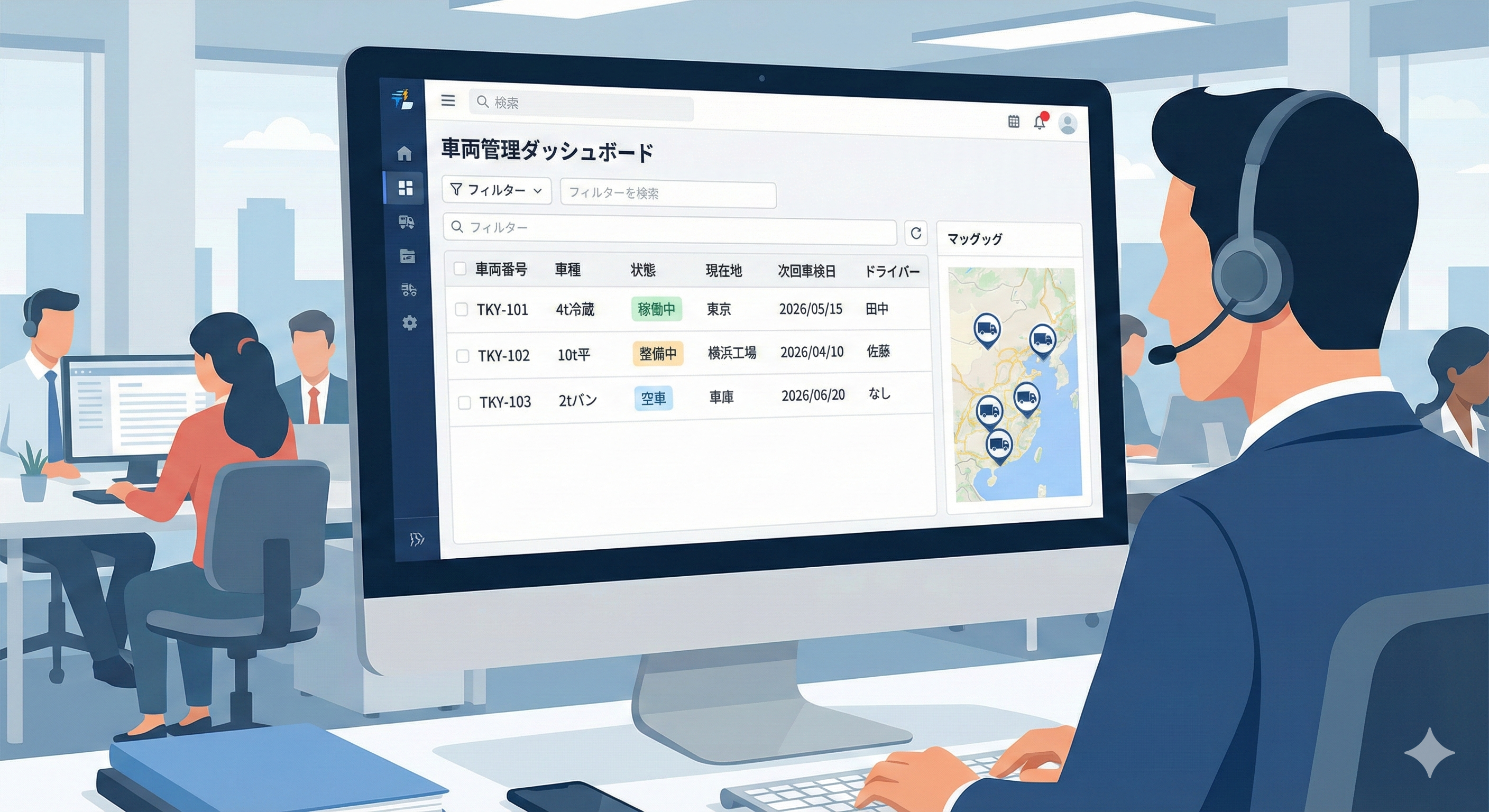 これを車番等の情報ひとつでデータ一元化できると素晴らしく使いやすいものになります。また売却時や所属移転時に共有しやすくなり、社内管理のレベルも上がります。