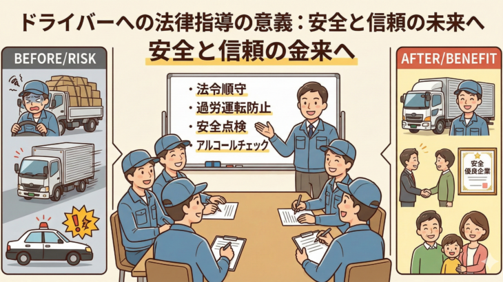 前回のコラムは、結局のところ、「時間外労働制限」、「改善基準告示」等、確実に法を遵守するためには、ドライバーが法を理解していなければ守れないというお話でした。 法について、事務所は理解しているけど、ド […]